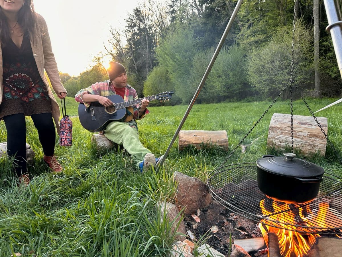 🔥 Lange Abende am Lagerfeuer: Genieße die Wärme und Verbundenheit am Lagerfeuer, während wir gemeinsam essen, musizieren und den Geschichten der Gemeinschaft lauschen.