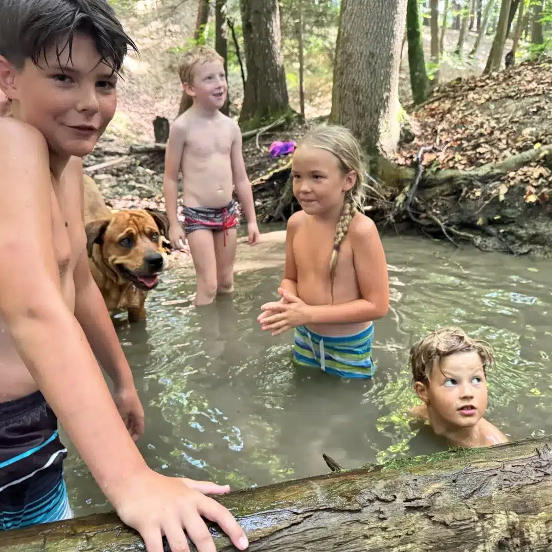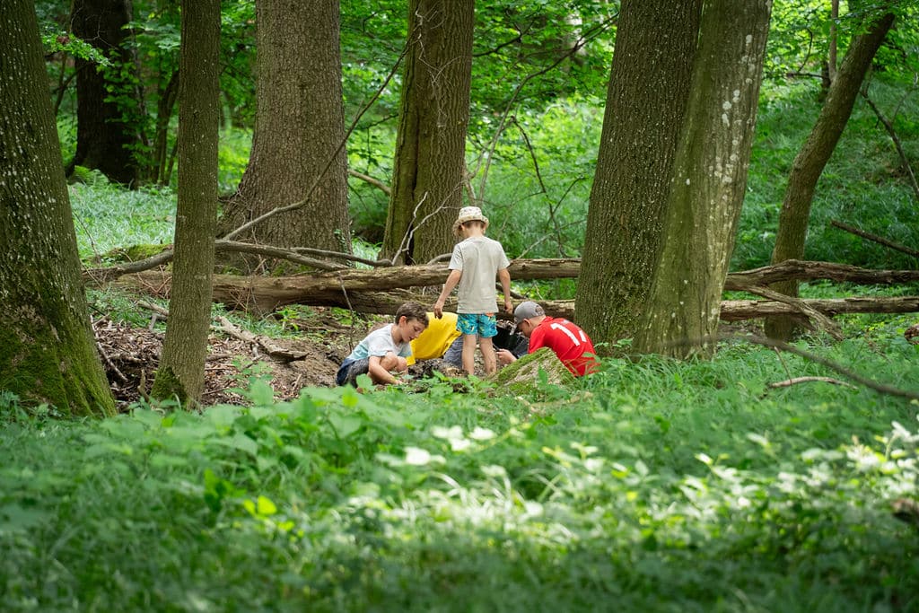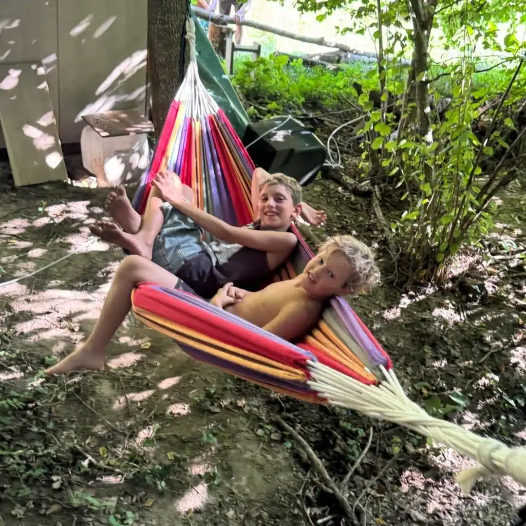 🌲 Abenteuer im Wald – Schleicht wie ein Luchs, sammelt Waldmeister und Brombeeren, baut ein Holz-Tipi, balanciert auf der Slackline, watet durch den Bach oder schaukelt einfach in der Hängematte. Wer ist mutig genug für ein Bad im Wald-Pool?