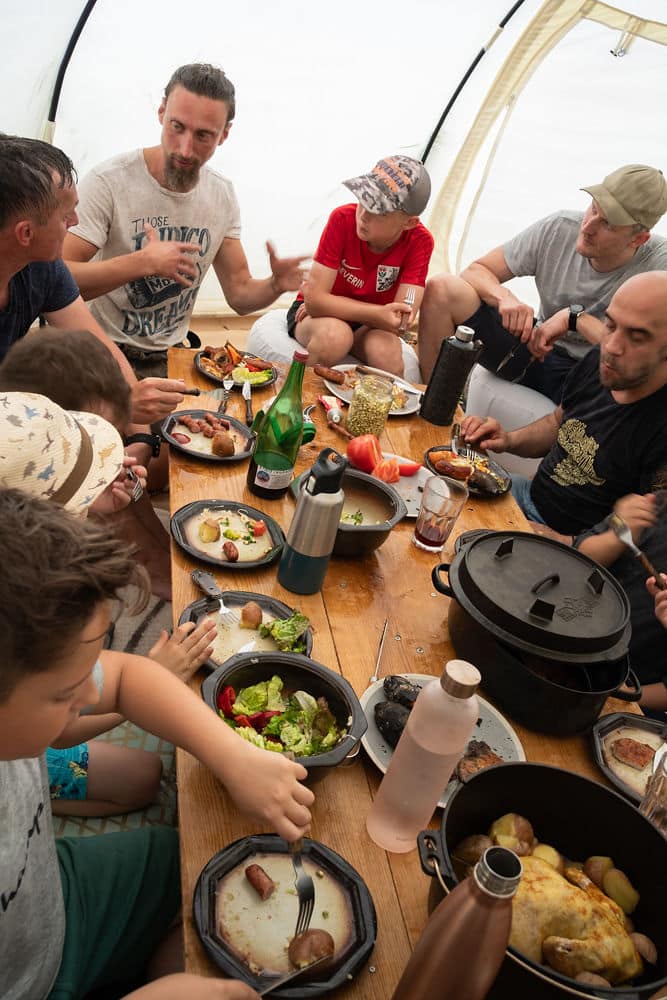 Die Vater-Sohn-Tage sind ein ganz besonderes Erlebnis – und jedes Mal ein bisschen anders. Es ist heiß? Das Waldbad ruft. Es regnet? Wir erzählen Quatsch-Geschichten im Zelt. Was wir aber meistens machen: