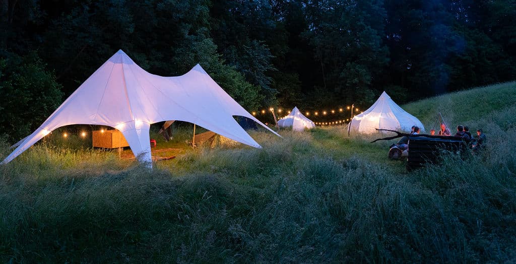 🦉 Übernachtung mit Tiergeräuschen – In unseren großen Rundzelten schlaft ihr gemütlich auf einer Strohunterlage und hört in der Ferne den ein oder anderen Waldkauz rufen.